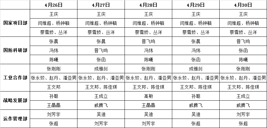 2020年4月26日-4月30日科研院值班表